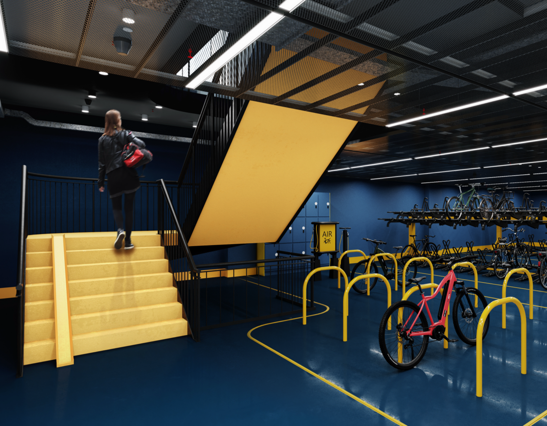 176 cycle spaces, 15 Brompton lockers and maintenance station